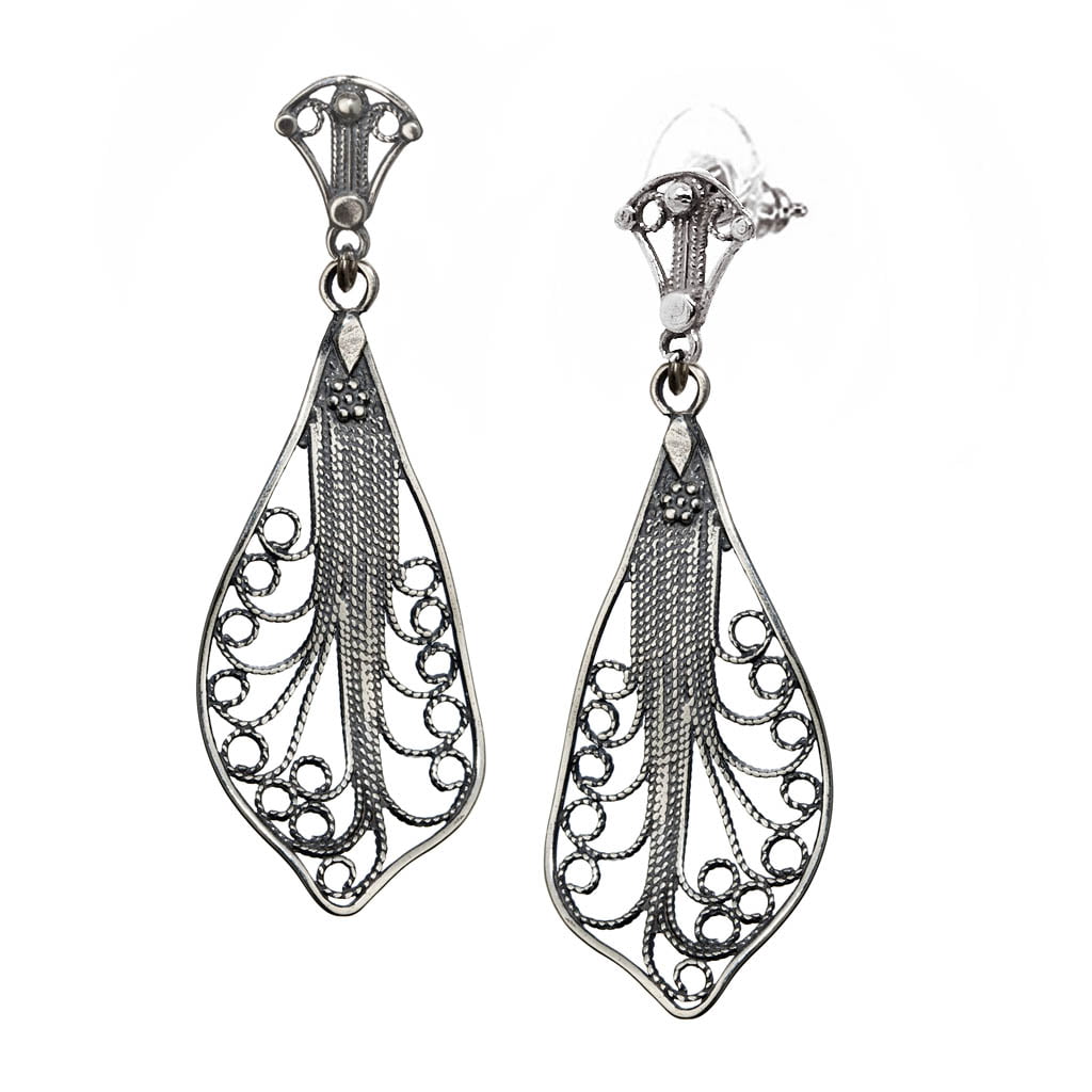 עגילי עלה מעוצבים בעבודת יד בטכניקת פיליגרן תימני
